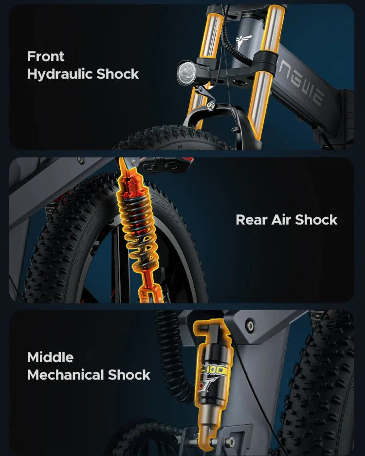ENGWE X26 е проектиран с тройна система за окачване, включваща: