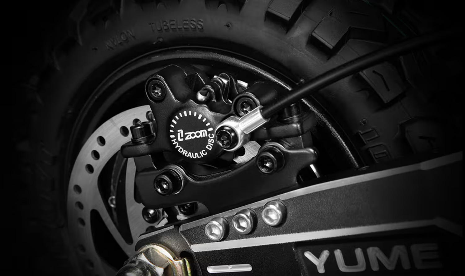 YUME Raptor разполага с предни и задни ZOOM хидравлични дискови спирачки с 140 мм ротори, комбинирани с електронна спирачна система (EBS) за допълнителна спирачна сила: