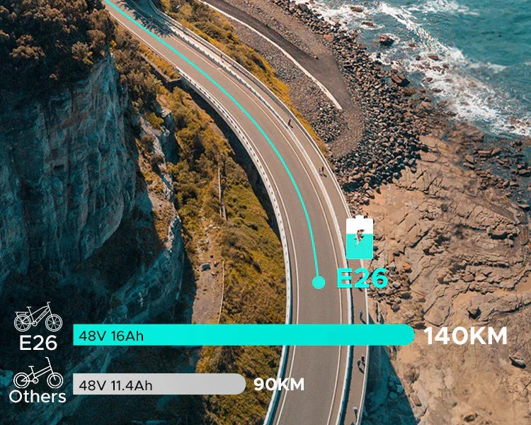 ENGWE E26 разполага с преносима 16Ah литиева батерия, която осигурява: