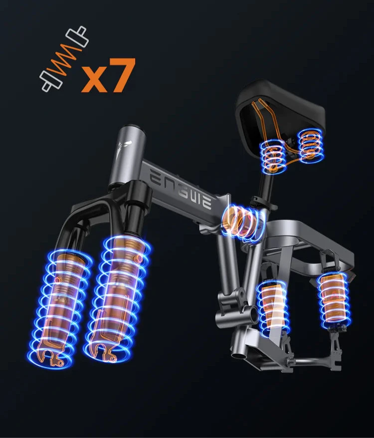 ENGWE T14 е оборудван със система от 7 амортисьора, която осигурява: